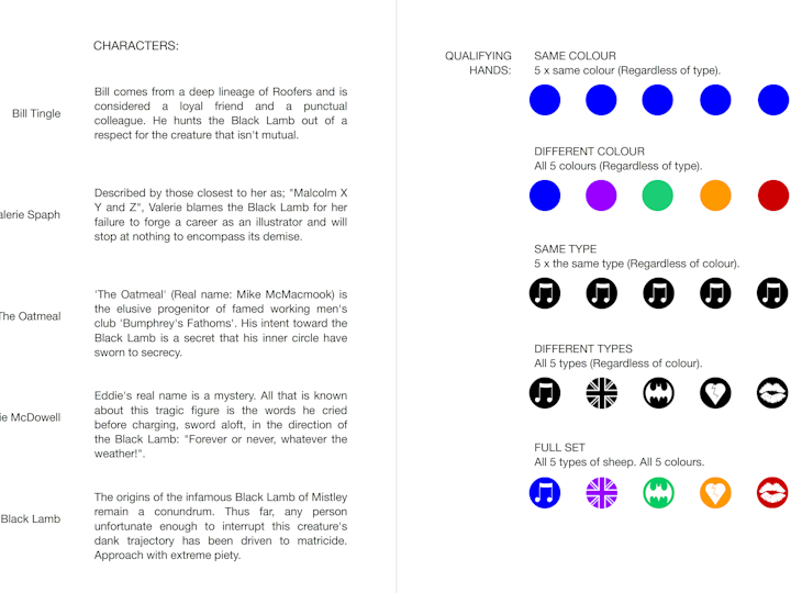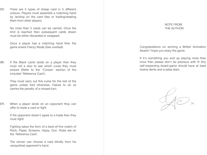 Every two years the British Animation Awards asks a selection of previous winners to create a sheep themed prize (Because; B.A.A.). Usually it’s a picture, but I’ve been waiting for an excuse to make a board game and so The Black Lamb was born. It’s a mix of Poker and Snakes and Ladders.